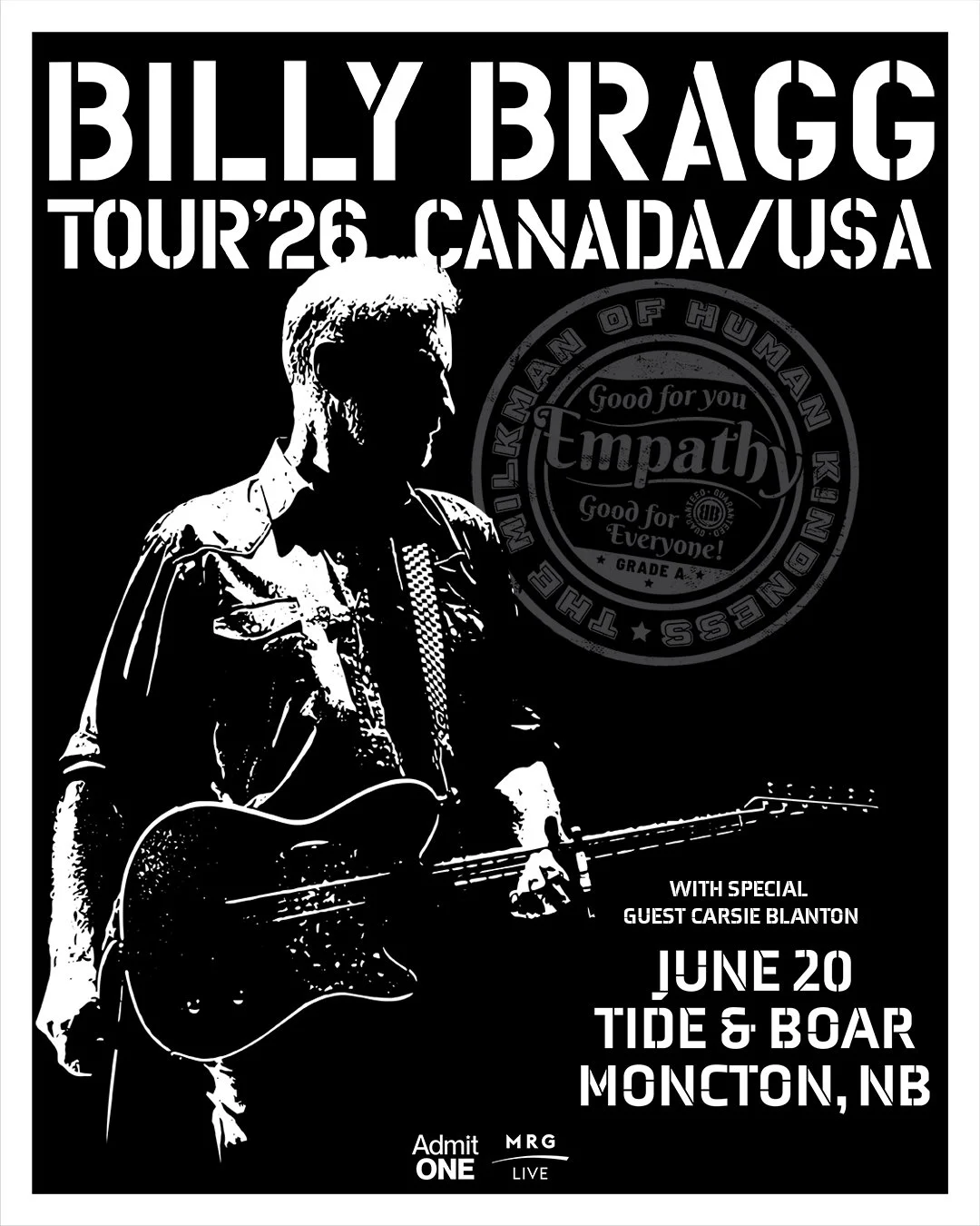 Galvanised in the late 70s by The Clash and an aversion to the austere policies of Margaret Thatcher, Billy Bragg set out to inspire political engagement and empathy, and he hasn’t deviated from that path. He has performed numerous benefit shows over the years - for the miners, the Labour party, CND, the jobless, the homeless and many more, and has run the Left Field political stage at Glastonbury for the last 15 years.