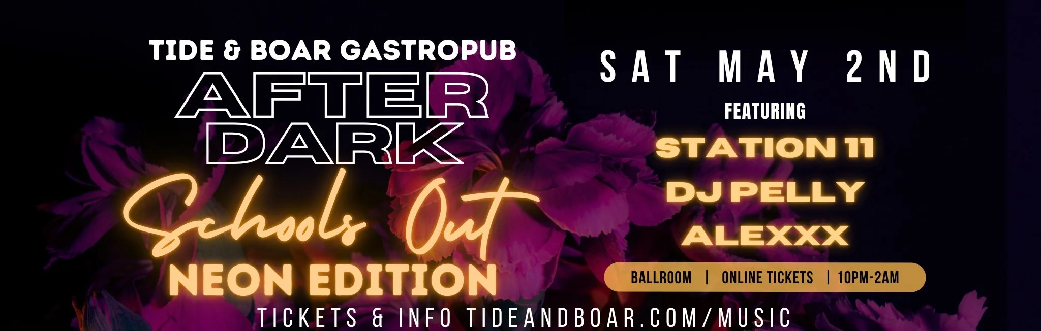 School’s Out: Neon Edition is taking over the Tide & Boar Ballroom on Saturday May 2nd for one last blowout before summer hits. Grab your crew, throw on your brightest fits, and get ready to glow all night under UV lights.